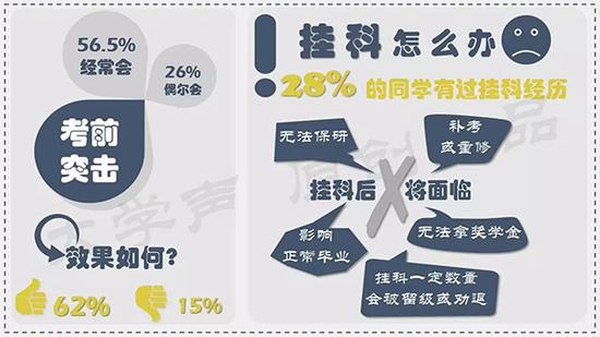 在考前,大多数的学生都会选择考前突击,“熬夜修仙”几乎成为了大学生的家常便饭。据大学声调查显示,有一半的同学会选择考前一两天熬夜进行突击。