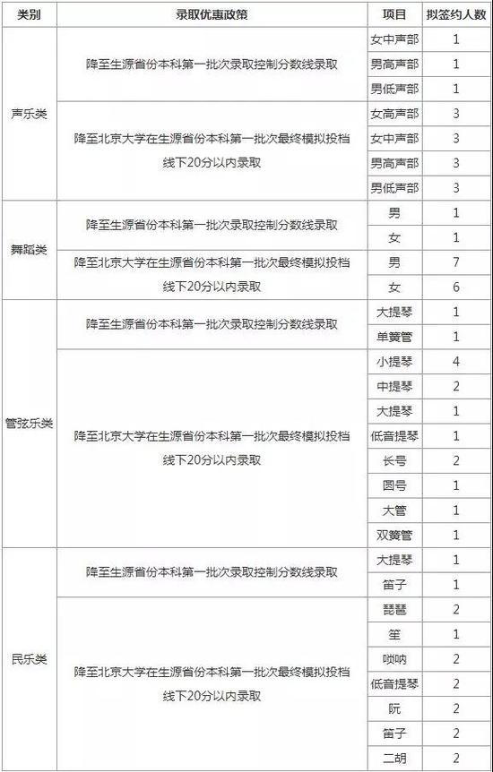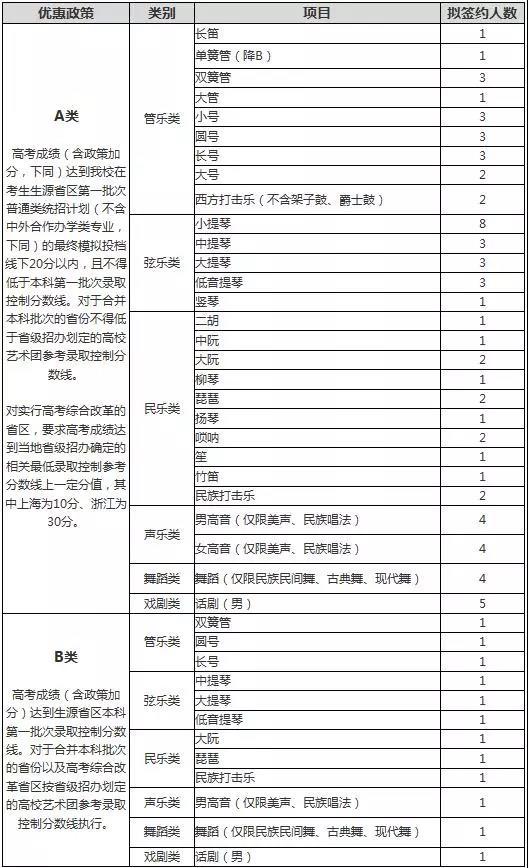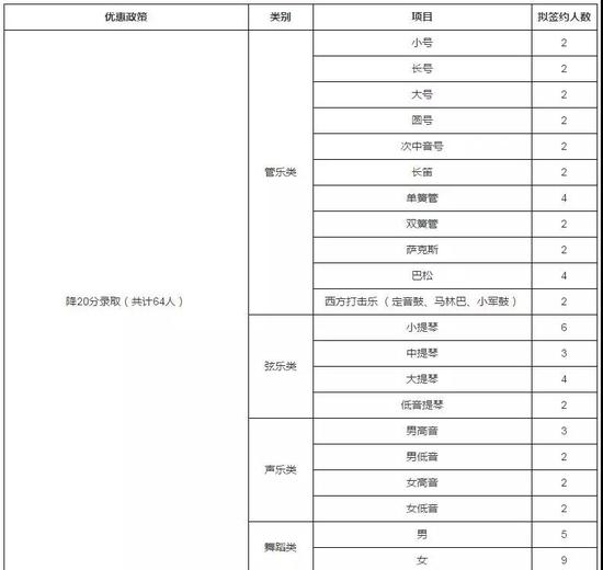 ?考生原则上要求具有较高独奏、独舞能力,从事多年专业训练,中学阶段具备3年以上参加乐团、舞蹈团经历者优先考虑。舞蹈类女生身高不低于162公分,男生身高不低于172公分。