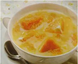 橙子除了鲜食,还会拿来做甜品,或西式沙律、酱汁等,而在粤式汤水中还有一道原只鲜橙炖瘦肉,甚具食疗功效,具有止咳平喘、开郁下气的作用。今天我们用橙子搭配南瓜做一道滋润糖水,是很不错的饭后甜品。