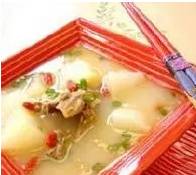 白萝卜煲鸭架汤具有下气消积、清肺火,止热咳、喉痛等功效。