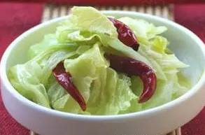 圆白菜300g、蒜5g、姜5g、白醋5ml、香油5ml、盐3g、干辣椒1g。