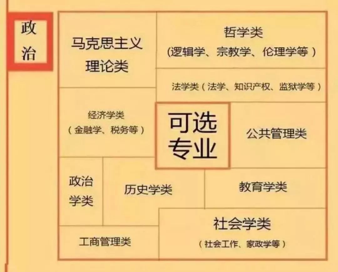 传统的三门纯文科组合。这个组合的最大缺点就是专业选择严重受限!
