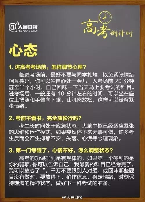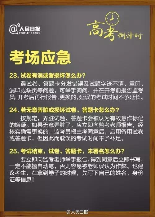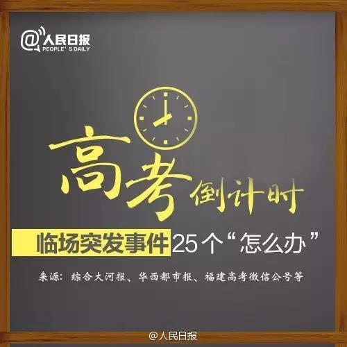 高考将近,群里就有很多家长开始问考场的注意事项,包括模拟考试当天的情景,为孩子操碎了心。为了帮助更多的考生和家长放心且顺利地参加高考,这里有25条高考临场突发事件的正确处理方法。欢迎各位家长收藏和转发,让更多人掌握这些方法,不至于在高考面前手足无措!
