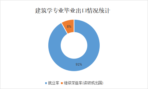 从市场需求来看,建筑学与城市规划就业前景良好,以下为专业毕业生去向的粗略统计情况:
