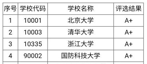 第一档:A+,一共有四所学校