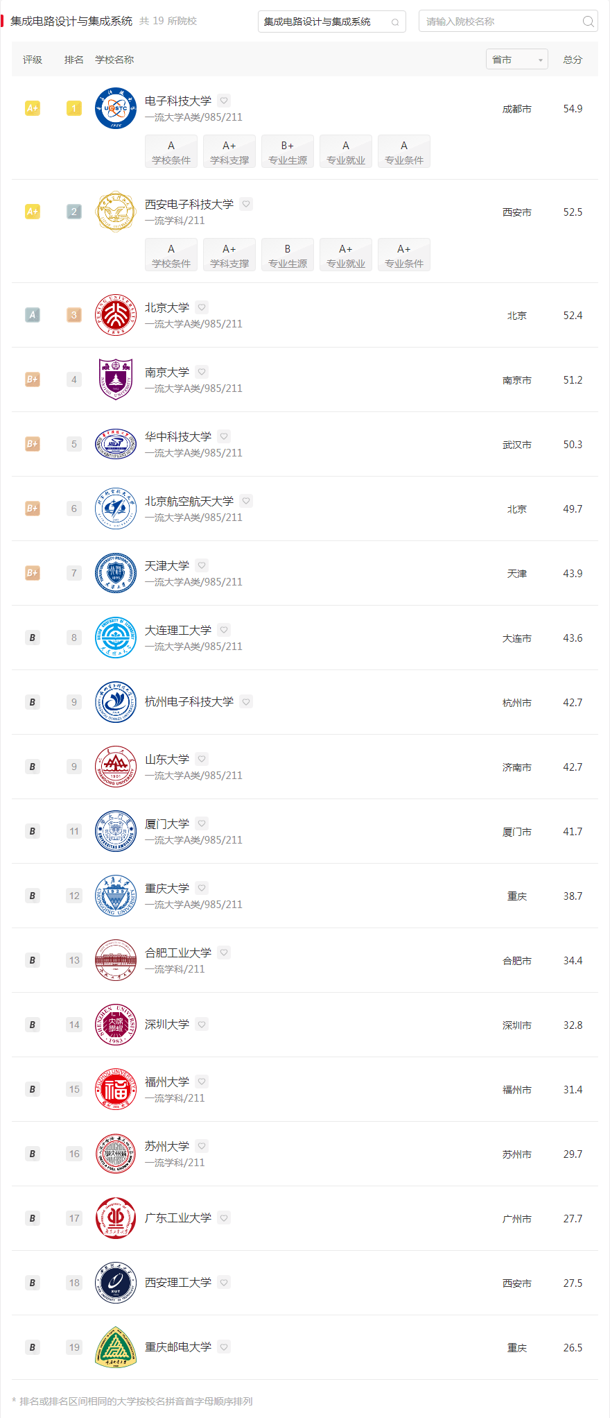 当然了,本科阶段的“集成电路设计与集成系统”专业,我们可以重点关注这些院校: