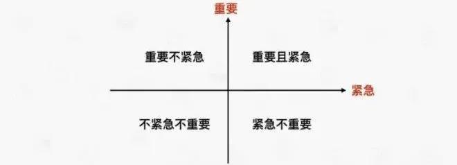 在这张图里,我们的所有任务被按照重要和紧急两个维度进行了划分,并分成重要且紧急、重要不紧急、紧急不重要、不紧急不重要四类任务。