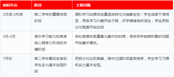 高二,是学生学习成绩的突变期,到了高二下半学期,学生的学习成绩便基本上定型了。