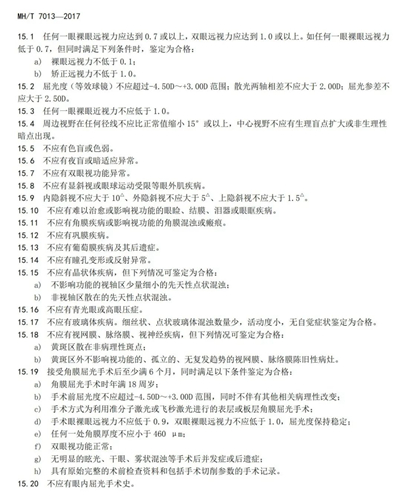 2017年公布的《民用航空招收飞行学生体检鉴定规范》(MH/T7013-2017)中,针对民航招飞的多项体检标准有所放宽,以最引人关注的“视力”要求为例——