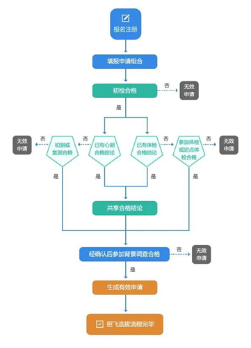 体检:“合格”、“不合格”、“未完成”、“未参加”、“待结论”,其中“合格”结论共享给其他“未完成”、“未参加”、“待结论”的申请组合;