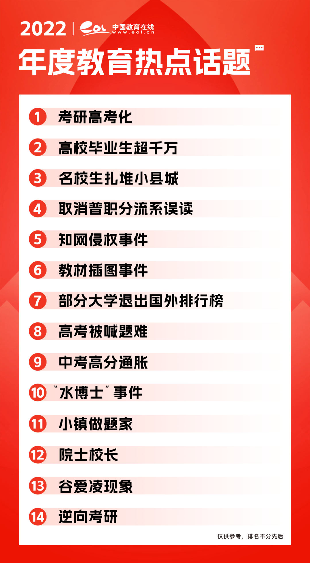 今天,让我们一起回顾2022年度那些不断引起公众关注和热议的教育话题、议题,看看你关注过哪个?