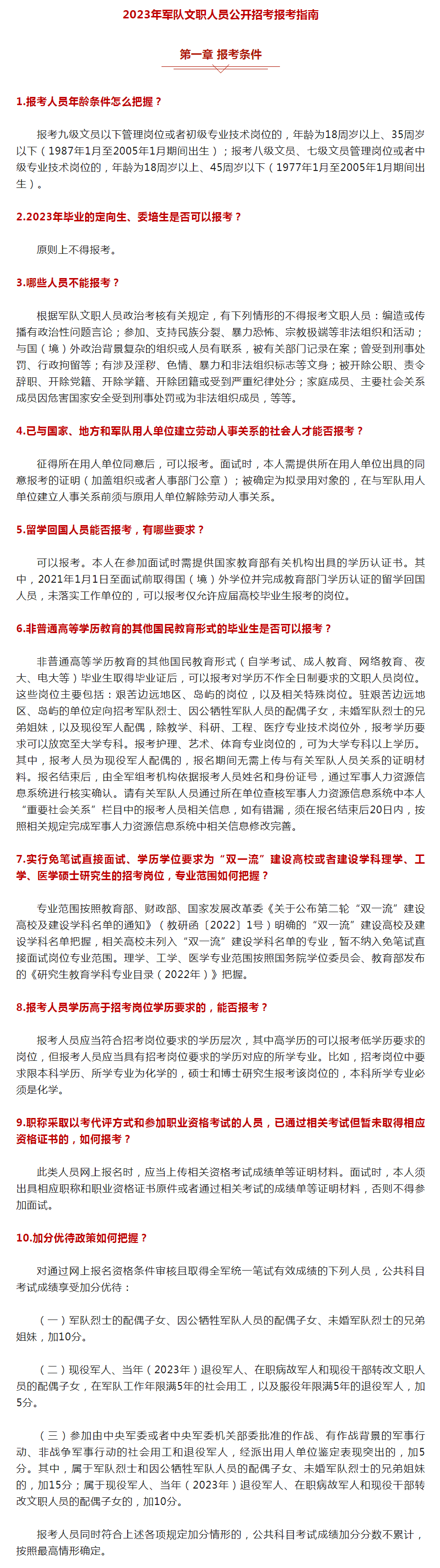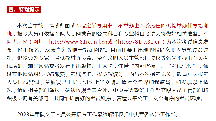 《2023年军队文职人员公开招考指南》: