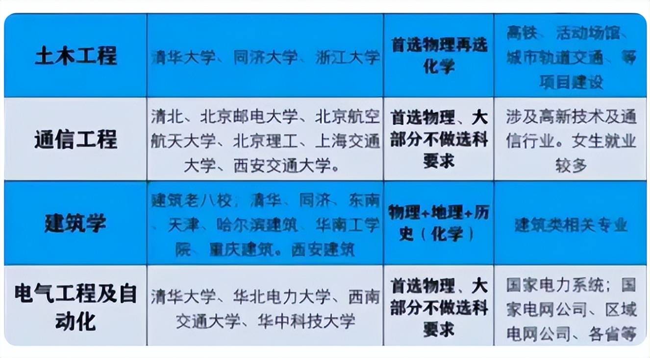 而且如果学生能考上表格中标注出来的知名大学,那么毕业后自然也不愁就业了。理工科兴国,是这两年来主流的发展专业,如果学生们有学习理工科的想法,那么可以多多参考一下这8个专业。