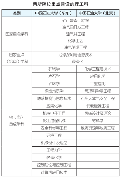 两所大学的国家重点学科都以石油相关学科为主,中国石油大学(华东)(华东)的省(市)重点学科相对较多。