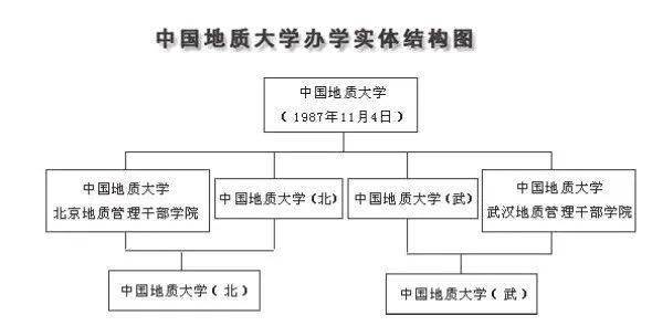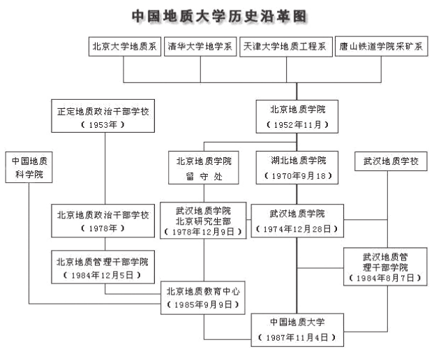 1987 年,经国家教委批准,武汉地质学院更名为中国地质大学(武汉),正式在武汉和北京实行两地办学,总部设在武汉。2005 年 3 月,大学总部撤销,武汉、北京两地独立办学。