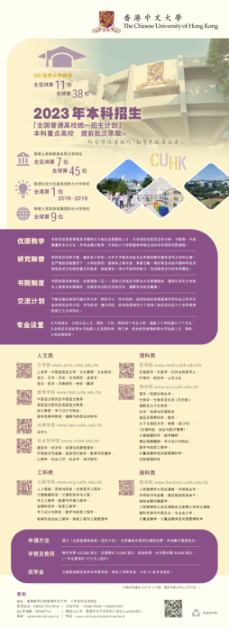 香港中文大学获国家教育部列入提前录取批次。高考生不需直接向本校申请,只需在高考出分后通过本科提前批次填报志愿。填报志愿日期请向所属省市招办查询 。