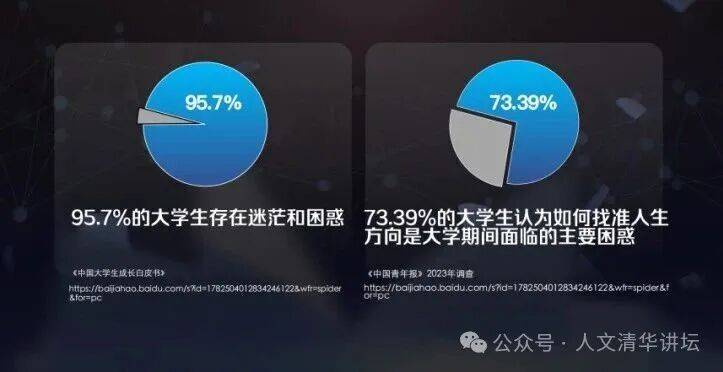 调查显示,当代大学生存在普遍痛点:95.7%的人迷茫困惑,73.9%的人认为“如何找准人生方向”是自己在大学期间面临的主要困惑。在传统教育体系中,学生从幼儿园开始就被训练成“标准答案的解题机器”,而在AI时代,只会刷题的“标准化优秀”已不再具备竞争力,因此大学生对人生方向的迷茫加剧。