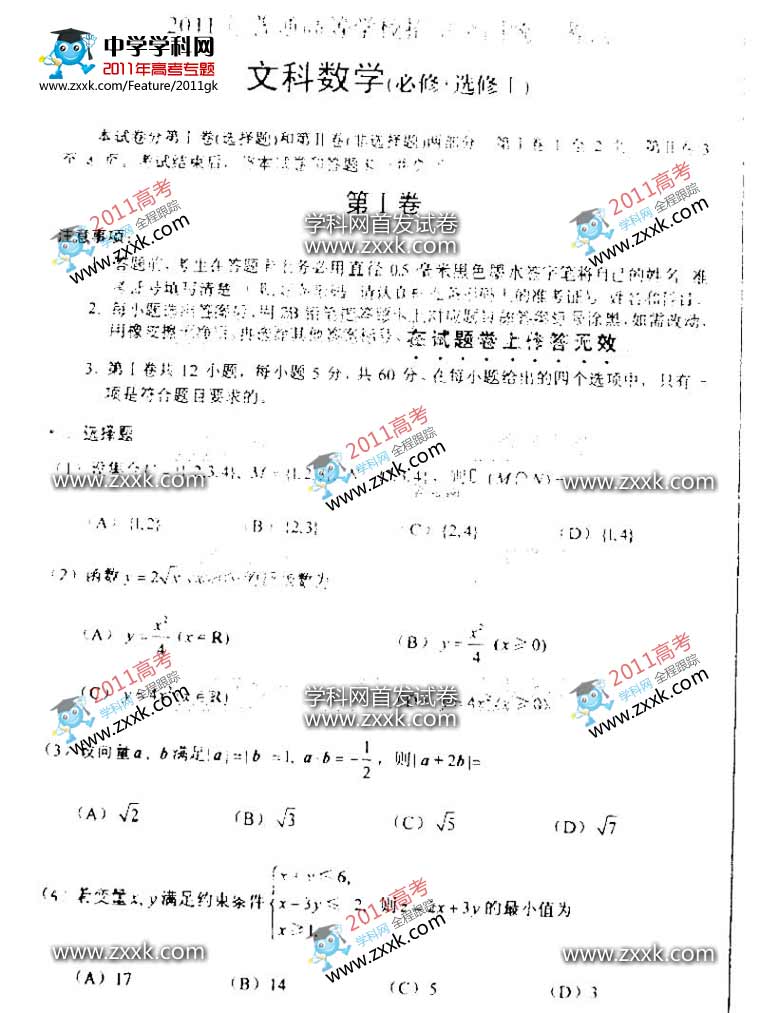 上一篇: 2011年浙江高考试题(理科数学)