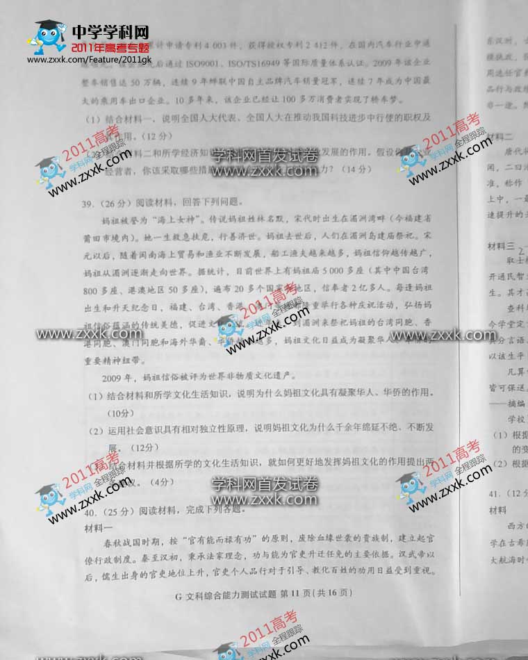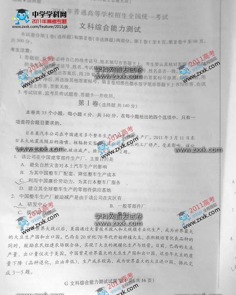 下一篇: 2011年山东省高考试题(文综卷)