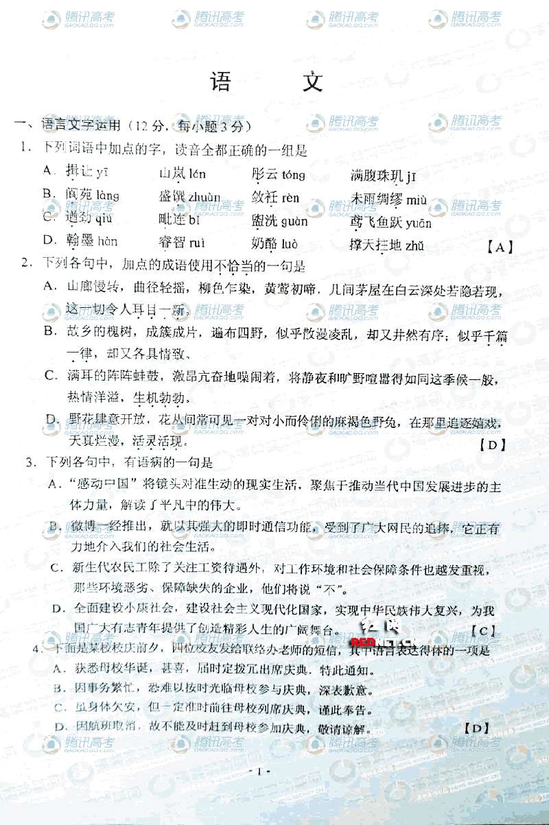 下一篇: 2011年湖北高考试题答案(文综卷)