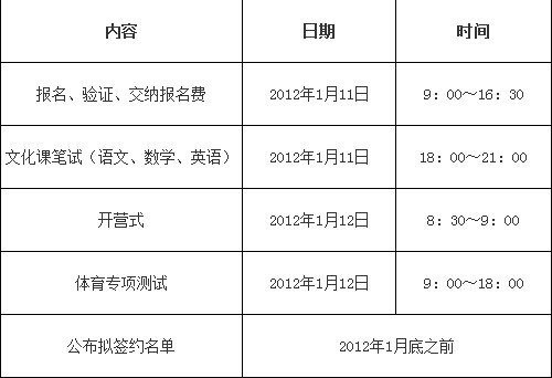 3.考试安排:对于符合我校招收体育特长生报考条件的申请者,必须参加我校组织的体育特长专项测试以及文化课笔试(如时间有变化,招生办公室将及时网上公布);