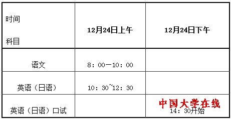 注:“英(日)语口试”结束时间视各考点考试人数而定,因我校要求口试阶段同一考点考生须等同一学校全部考生考试结束后才可离开,所以,请非考点学校的考生注意返程票的时间不要太早,以免耽误行程。