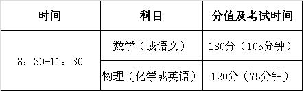 考试分为笔试和面试。认定专业为理工一类(A组)笔试内容为数学、物理;理工二类( B组)笔试内容为数学、化学;社科语言类(C组)的笔试内容为语文、英语。具体事项安排如下: