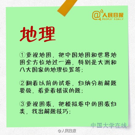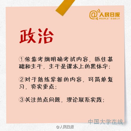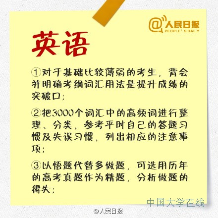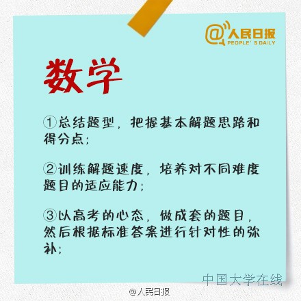 高考倒计时【最后十天!各科复习方法全汇总】①语文:回归课本,思考总结阅读理解题;②数学:总结题型,训练解题速度和适应能力;③英语:整理分类考纲中的高频词,列出重点及易错点;④政治:梳理社会热点问题,归纳对应知识点……最后十天,方法和心态同样重要。要相信,你的努力不会白费!加油! [NextPage]
