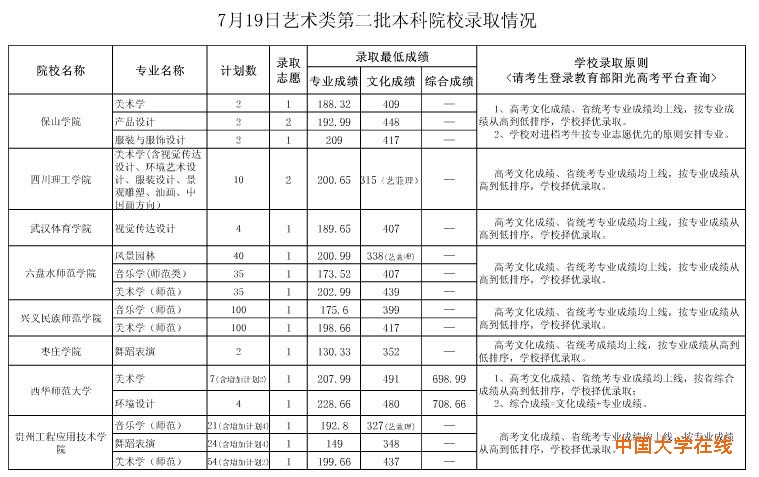 贵州2014年高考艺术类二本院校录取情况(7月19日)