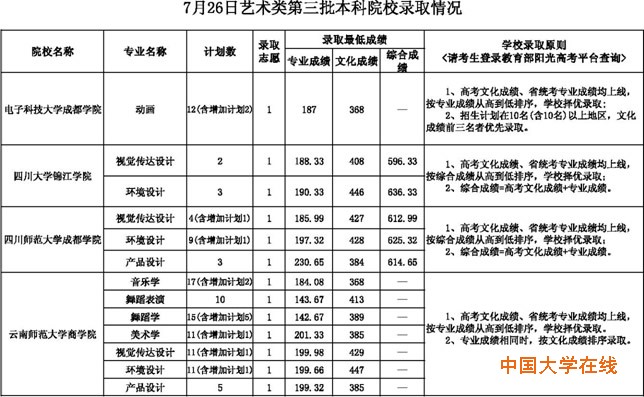 7月26日艺术类第三批本科院校录取情况