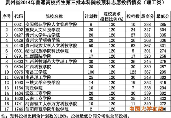 下一篇: 2014年贵州高考第三批本科院校预科志愿投档情况(文史类)