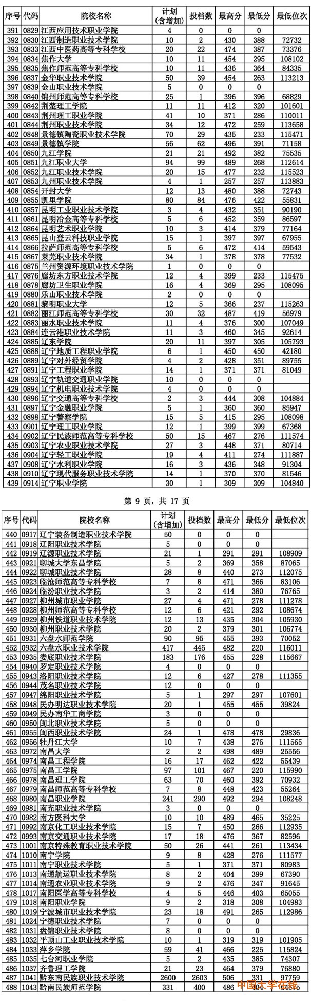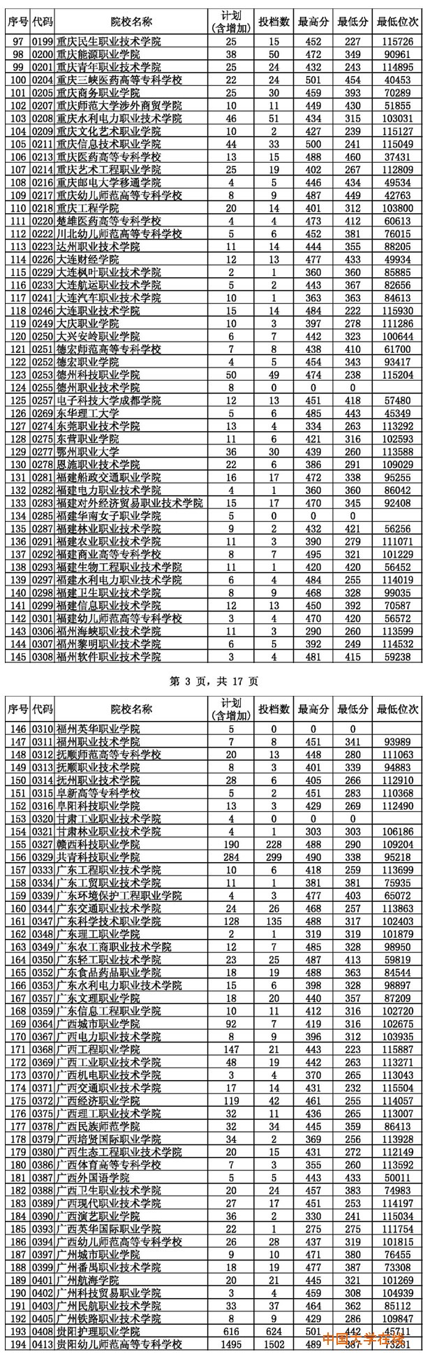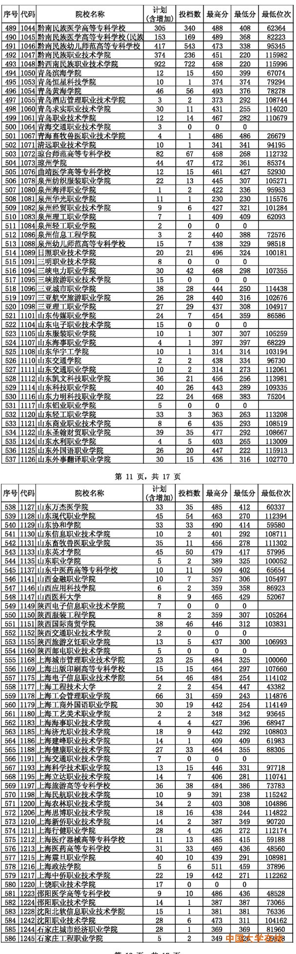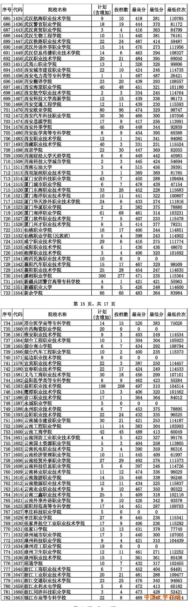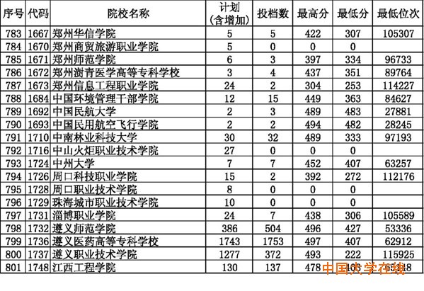 2014年贵州高考高职(专科)平行志愿投档情况(文史类)