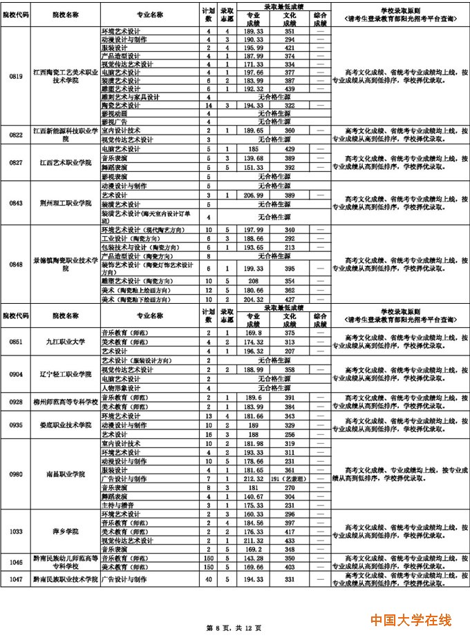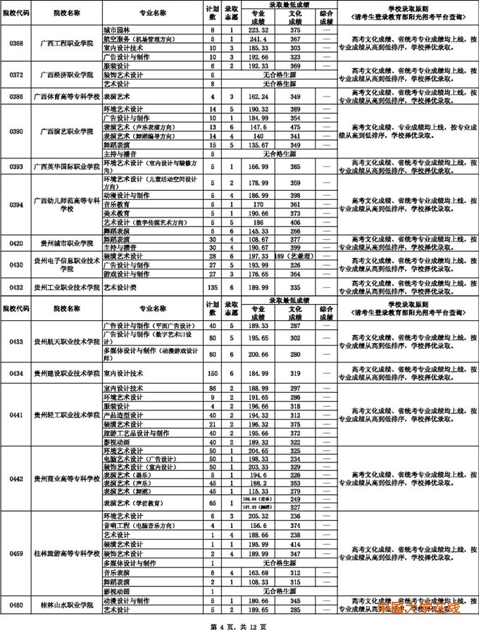 2014贵州高考8月14日艺术类高职专科院校录取情况