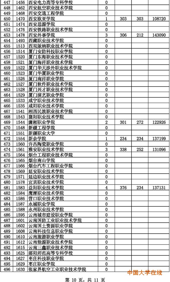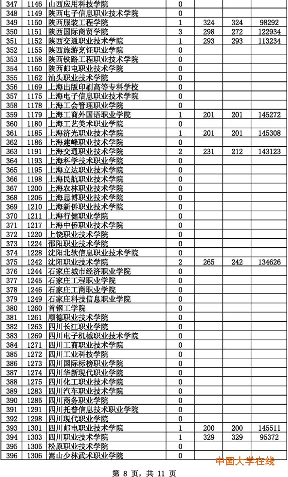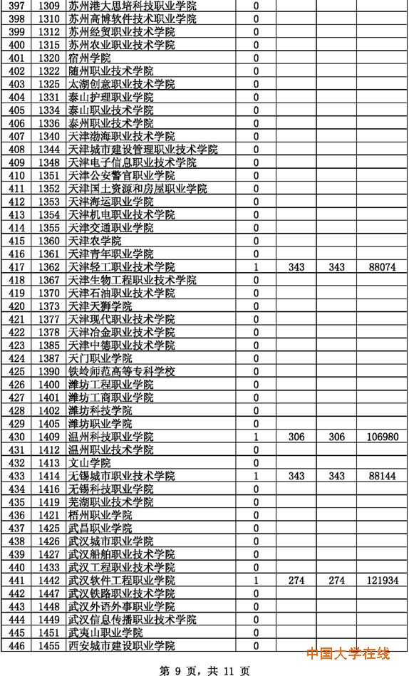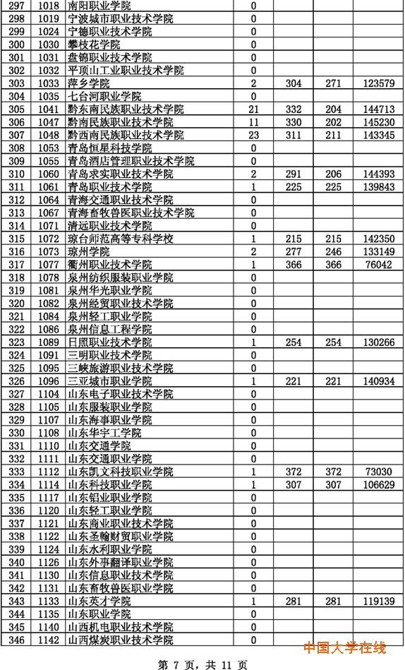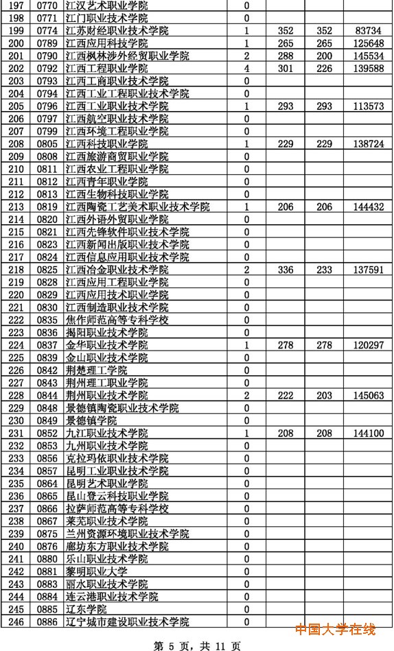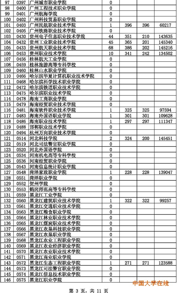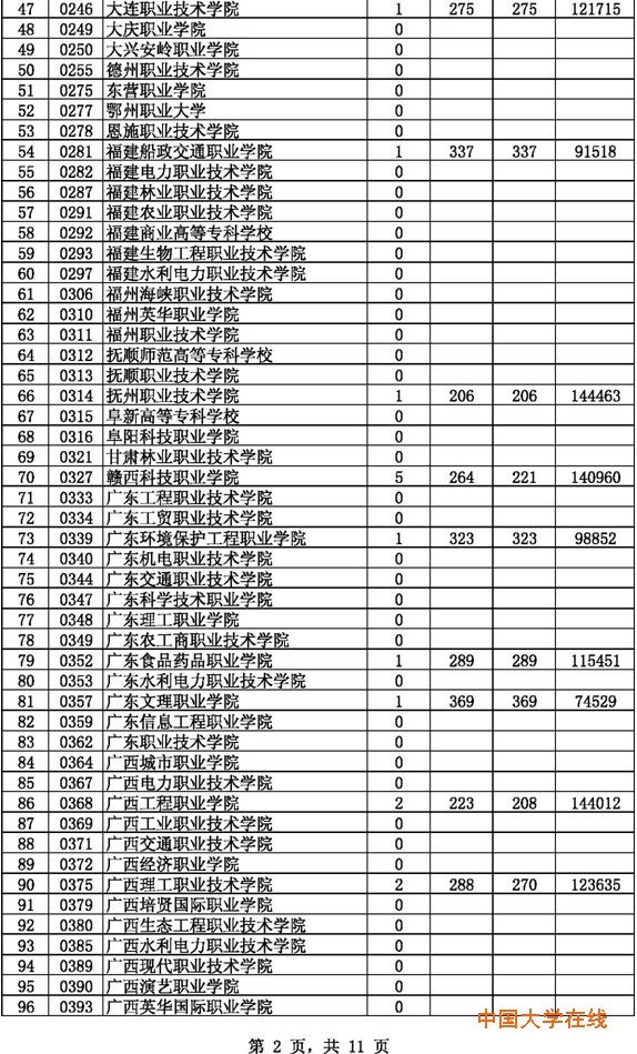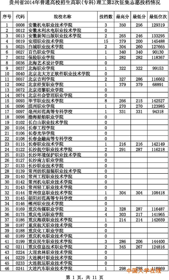 2014年贵州高考高职(专科)理工第2次征集志愿投档情况