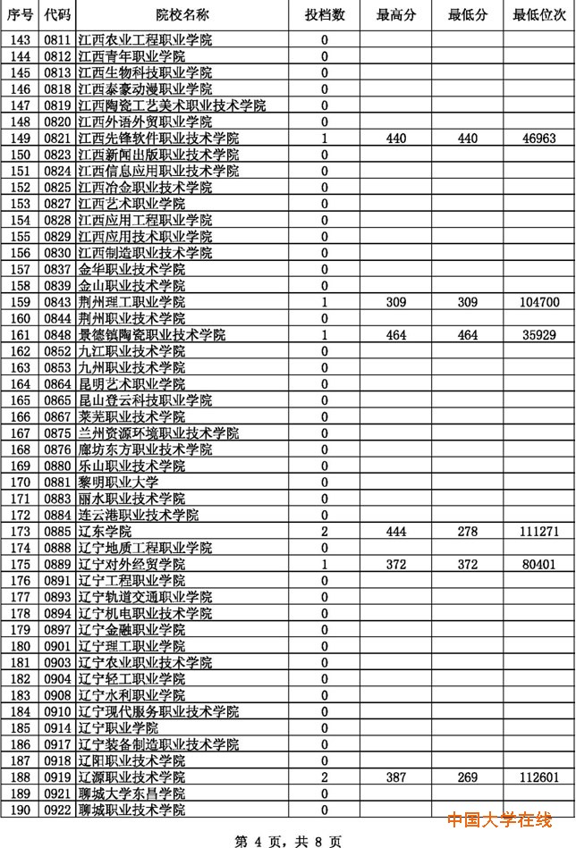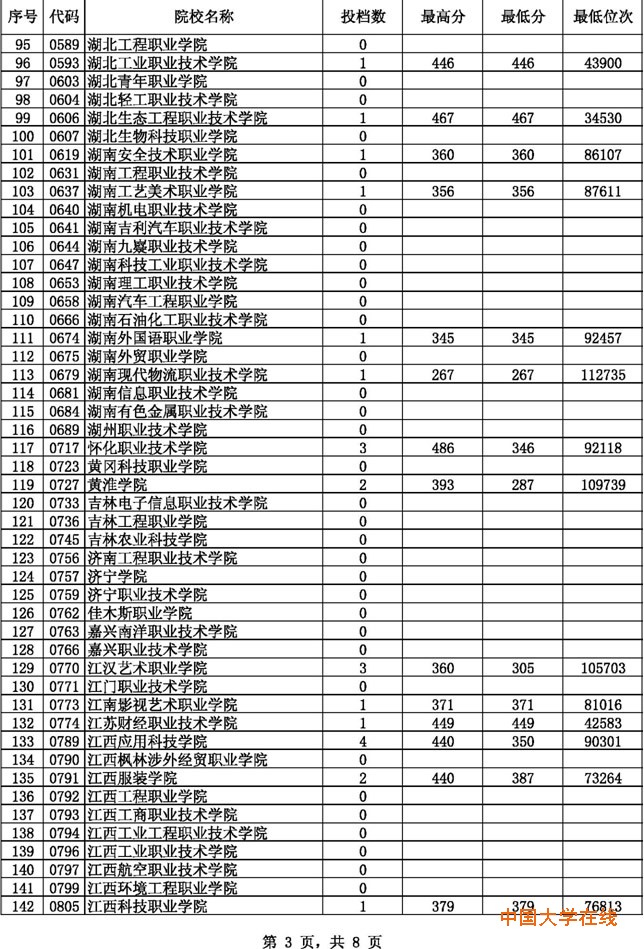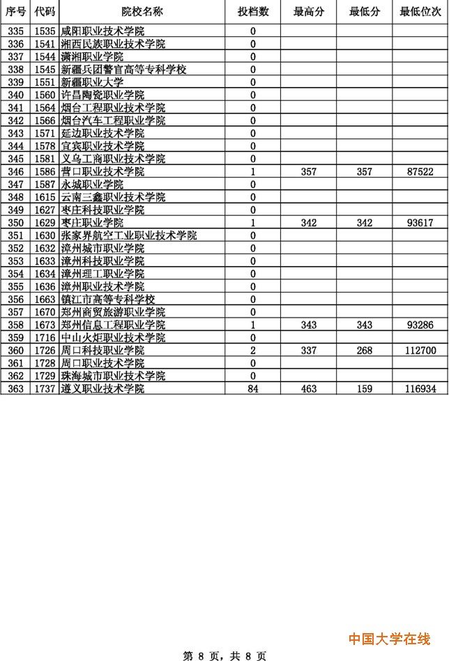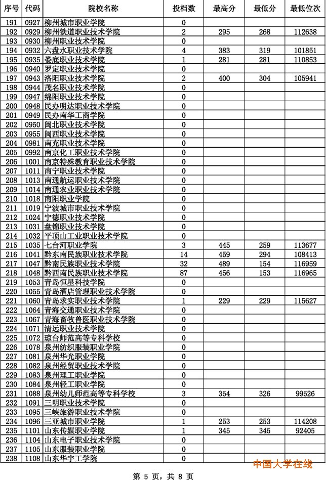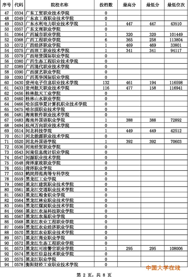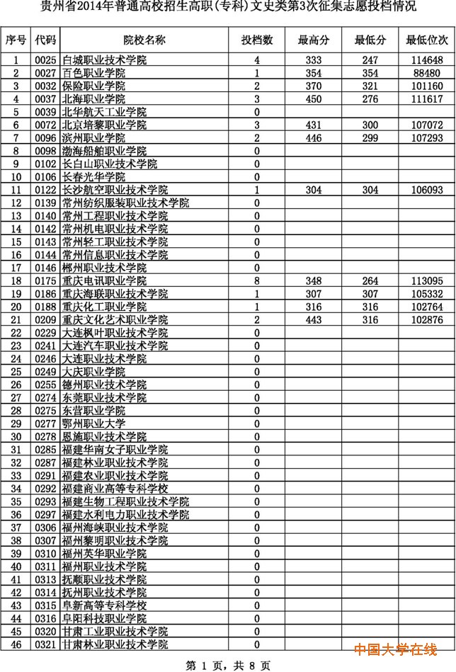 2014贵州高考高职(专科)文史类第3次征集志愿投档情况