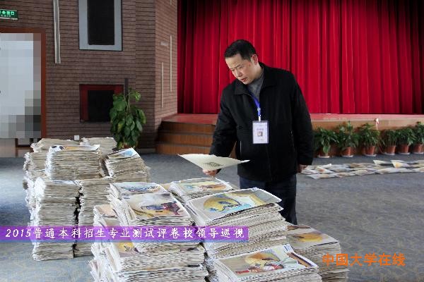我校2015普通本科招生专业考试评卷工作在我校招生领导小组的有力领导下,在全体师生员工的大力支持与配合下,经过二十多天严肃认真、紧张有序的工作,目前已圆满结束。评卷工作期间,校领导、招生领导小组、招生委员会全体委员、校纪委办公室等相关职能部门多次前往评卷现场巡视检查评卷工作情况并召开评卷工作现场会议,听取招生职能部门的工作汇报,评议商讨有关工作并给予了指导性意见和建议。
