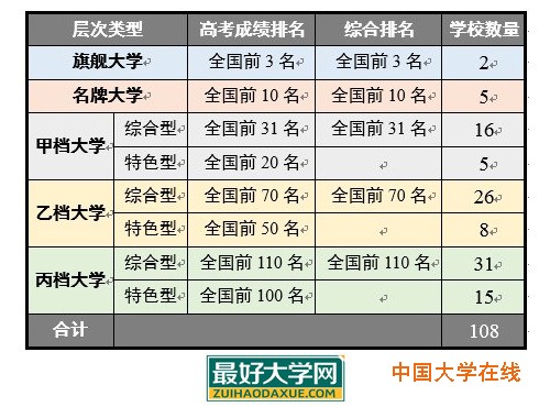 图1、中国108所好大学的分层与分类(适用于报考本科学校)