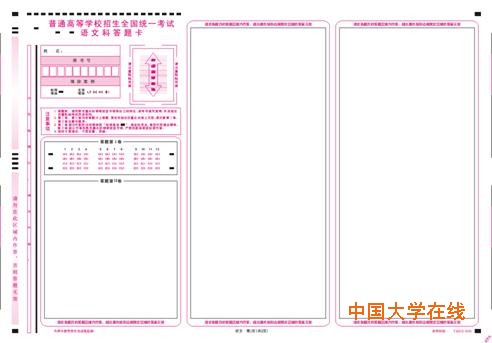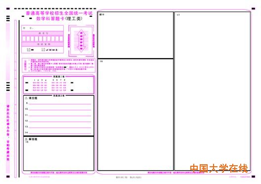 答:高考语文、数学、综合、英语科目均实行网上评卷,各科答题卡样式与市高招办发给考生练习的样卡基本相同,根据实际的具体试题要求做相应微调。考试时的答题卡会印有相应的题号、答题区域和提示,请考生作答时务必注意。(各科答题卡具体样式附后)