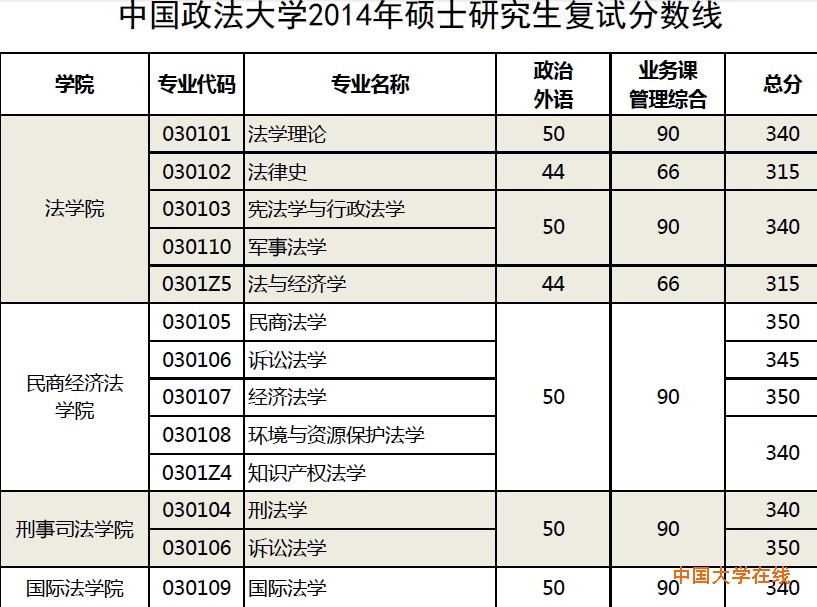 2014年中国政法大学考研分数线已经公布中国政法大学研究生院 2014-03-20