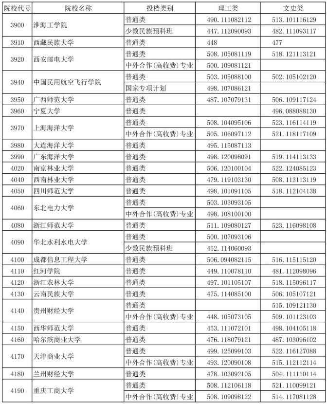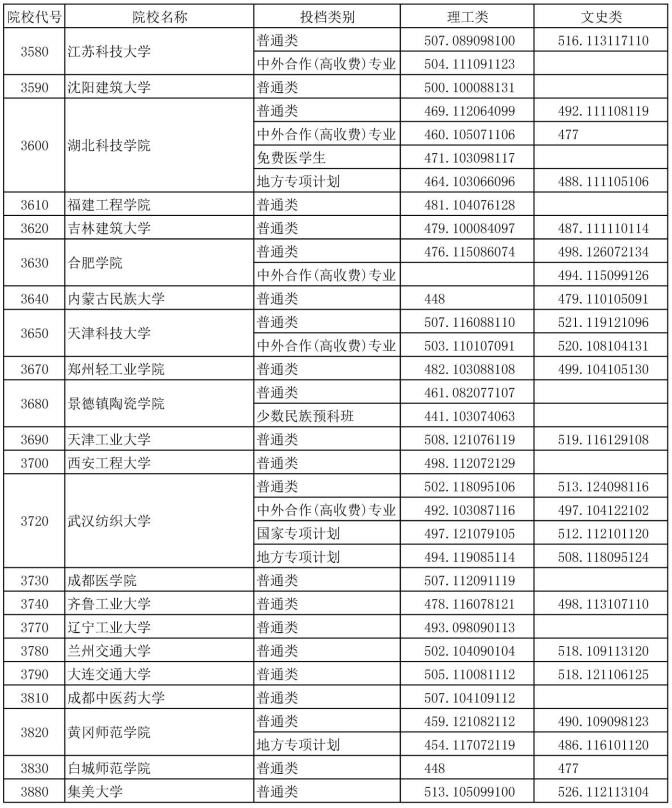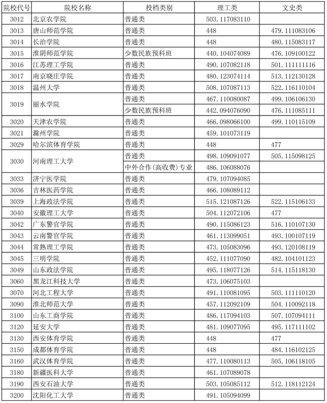 院校投档成绩说明:小数点前三位数字为特征成绩,小数点后一至三位为语文成绩,四至六位为数学成绩,七至九位为外语成绩。