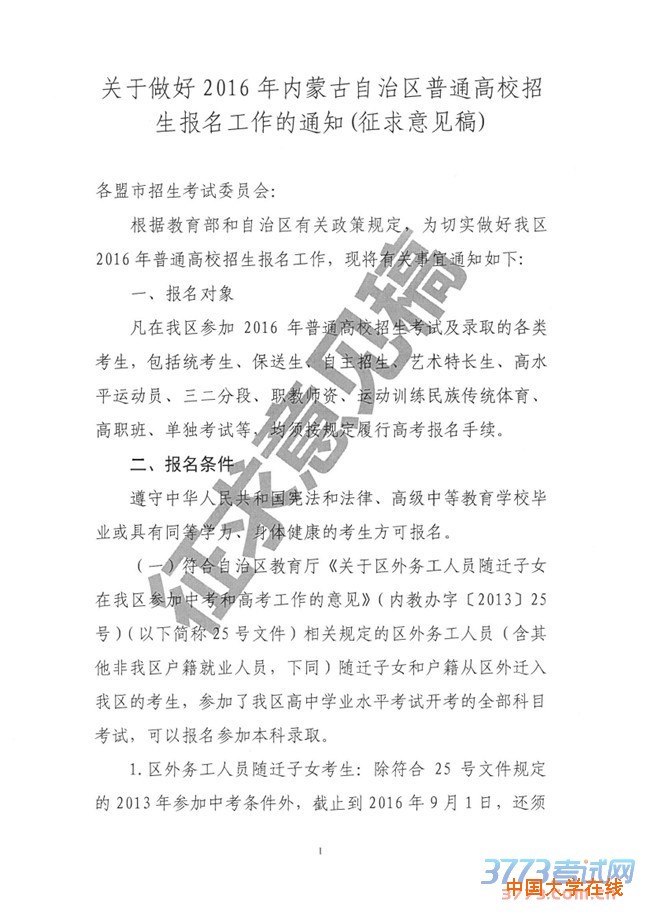 下一篇: 2016内蒙古高考报名工作的通知(征求意见稿)